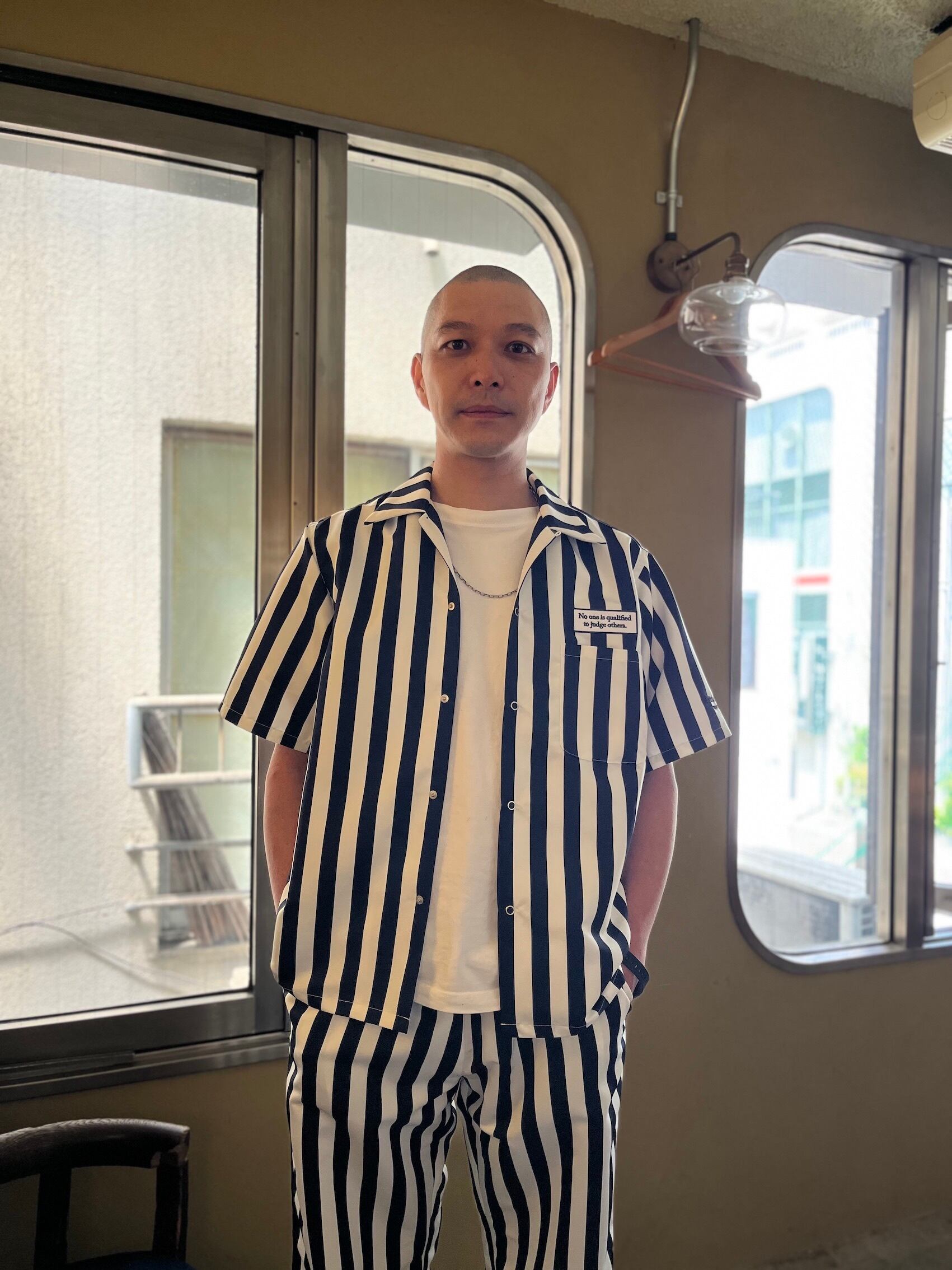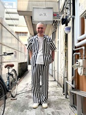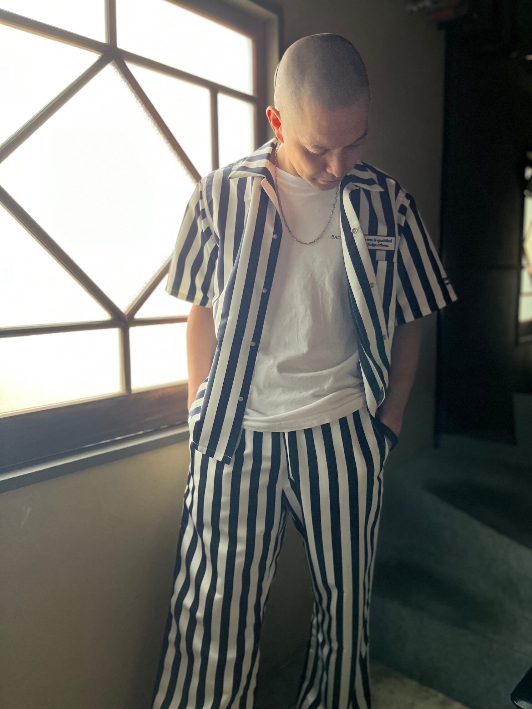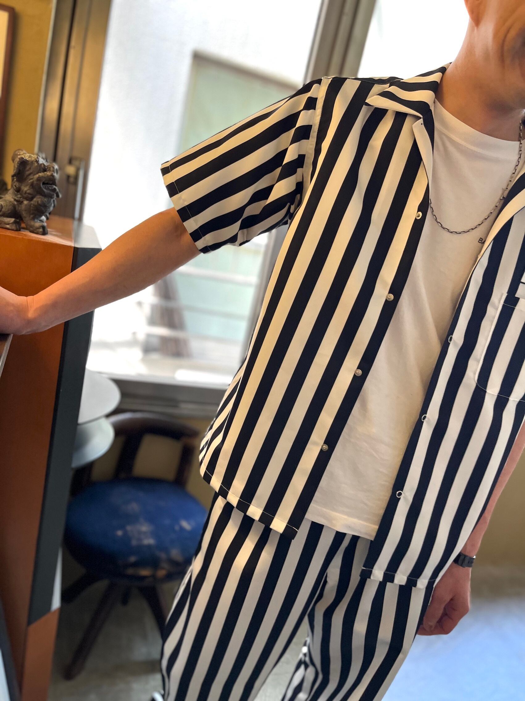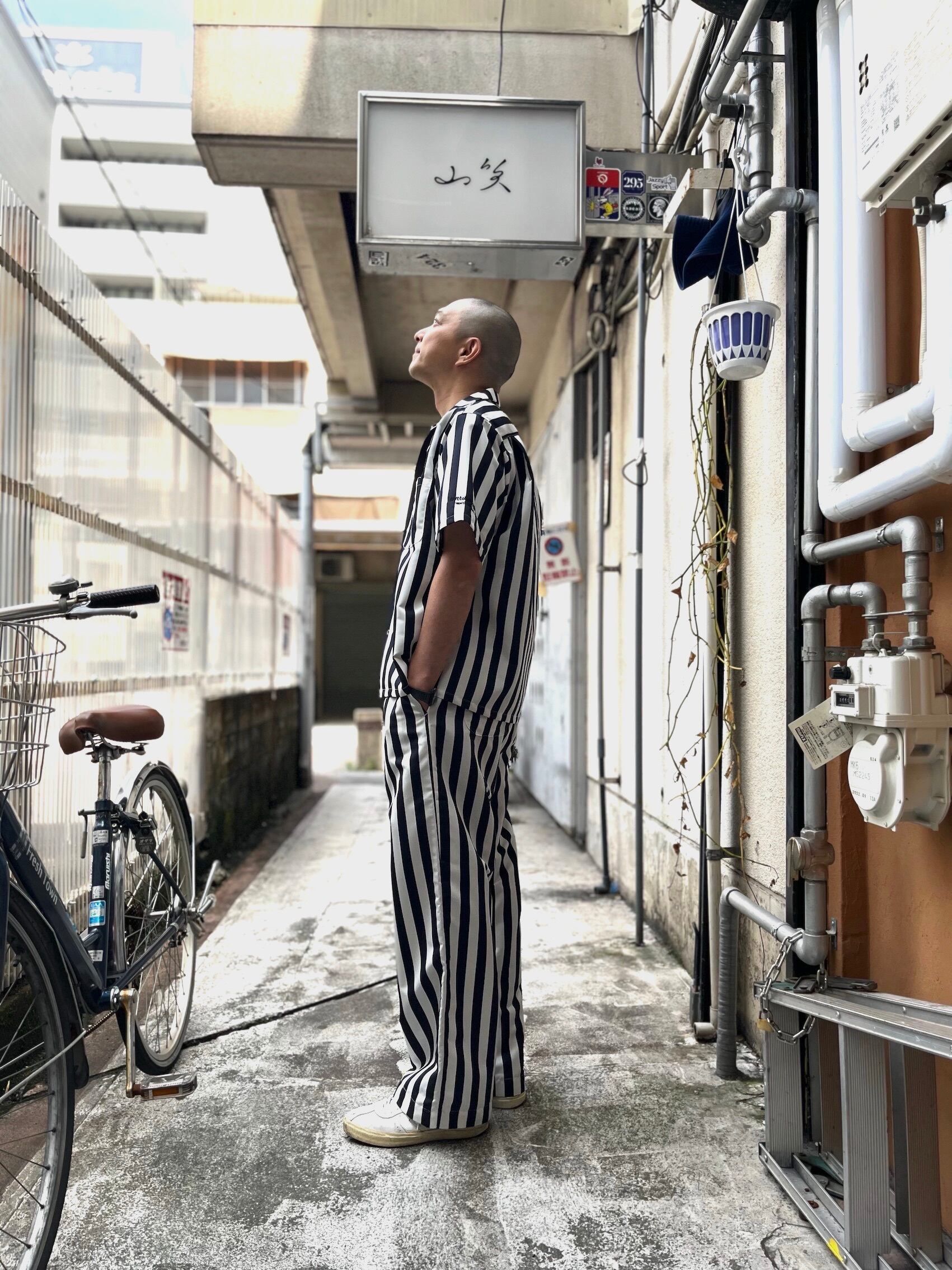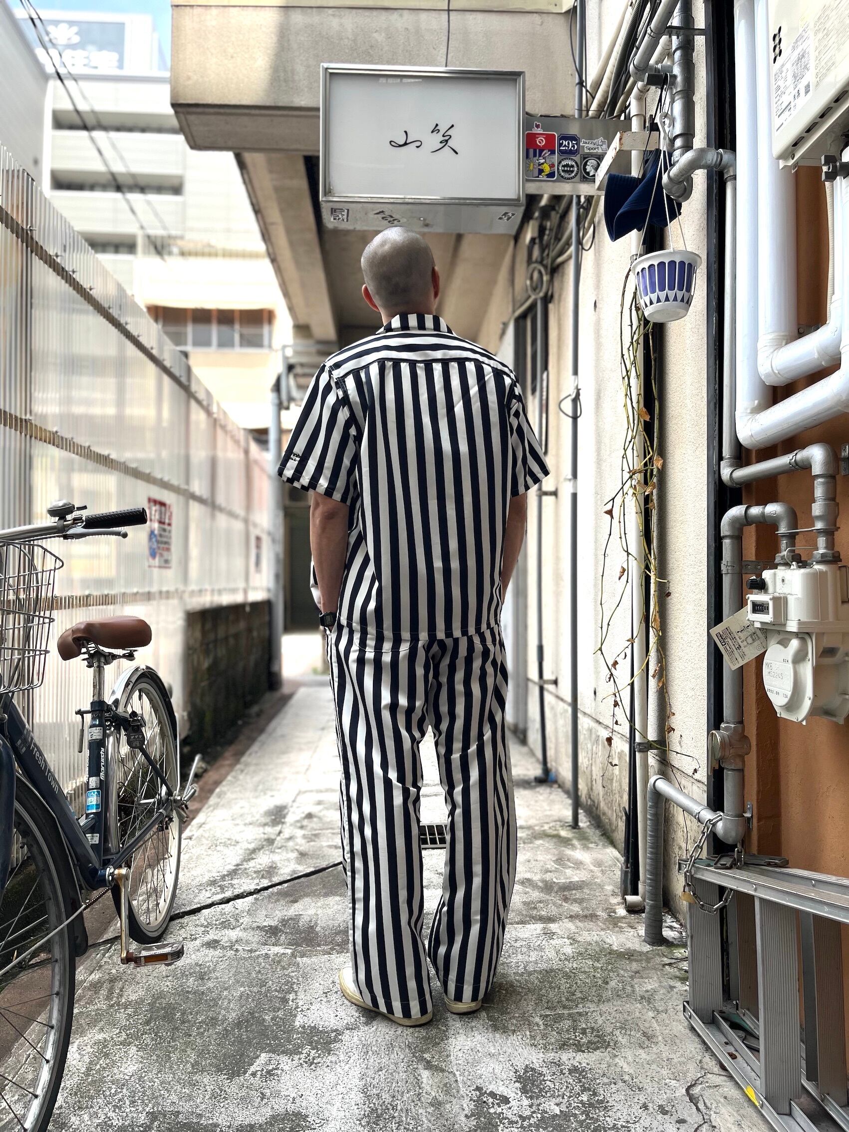 さて、散々御託をこねくり回した挙句に、ガラガラポンと出ましたるは、ファッション業界においては既視感しか感じない、ただの平々凡々なるストライプという記号のセットアップ。